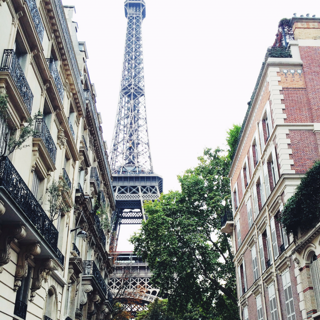 Eiffel Tower view from downtown buildings