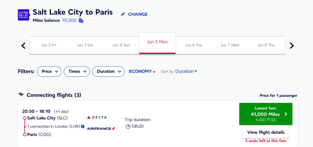 Flying Blue also allows you to combine your cash and points. So if you don’t have enough miles to cover a full ticket you can combine cash with your points to lower the cost of your overall ticket!