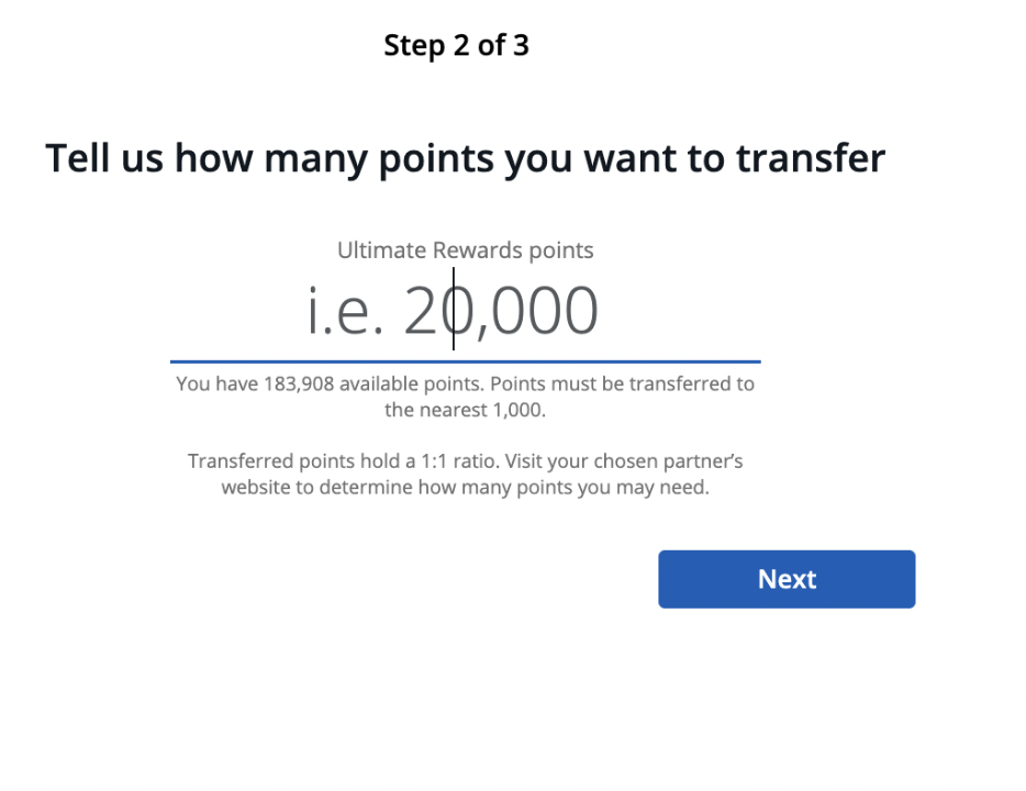 - Decide on the number of points you'd like to transfer, generally in increments of 1,000. Confirm the details and execute the transfer. These transfers usually happen instantly, but in some cases, they might take up to a few days.