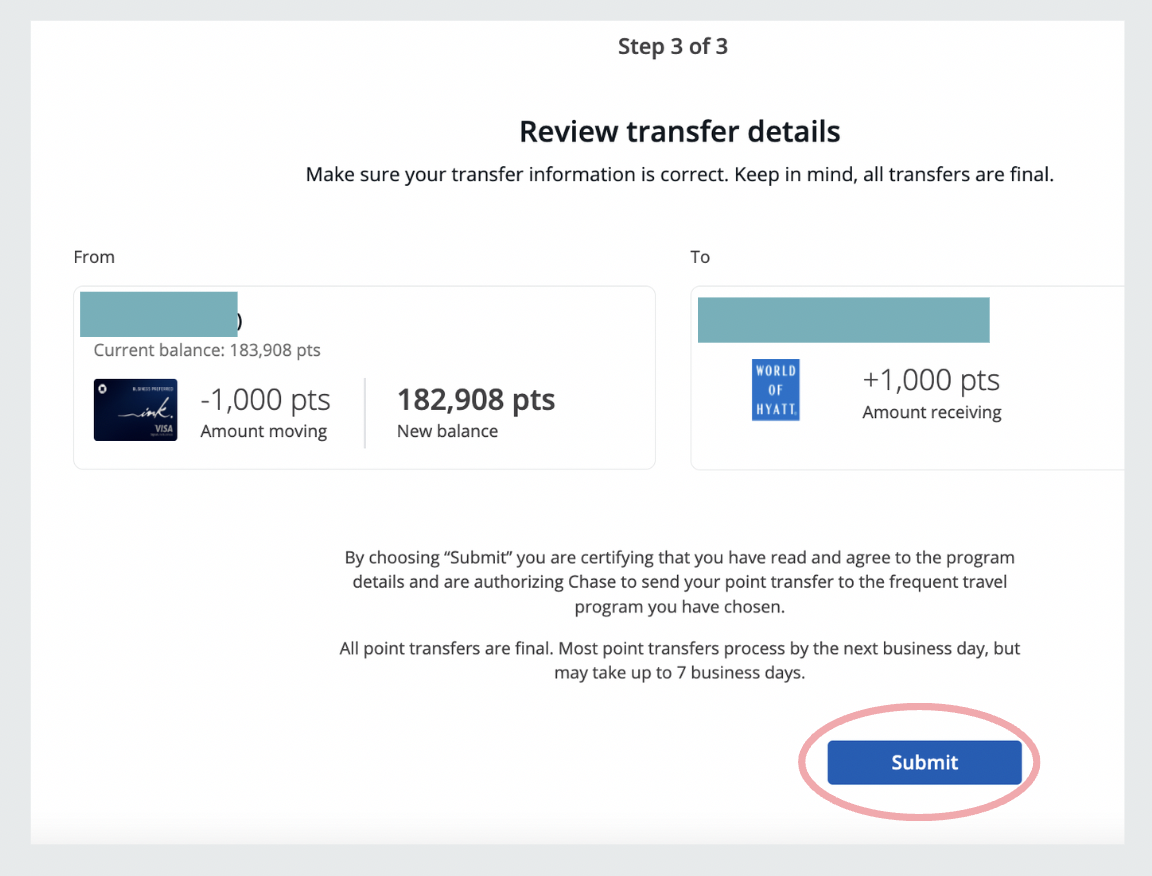 - Verify your transfer and hit "submit," then check your loyalty program account to ensure the points have arrived. This is where your exciting travel planning begins, and you can book nearly free flights and hotel stays! *Note: Most transfers are instant but some can take up to 24 to 48 hours.